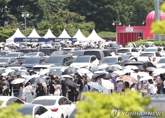 Fãs fizeram fila para participar de eventos presenciais da Festa do BTS de 2024 no Complexo Esportivo Jamsil, no sul de Seul, nesta foto de arquivo de 13 de junho de 2024. (Yonhap)